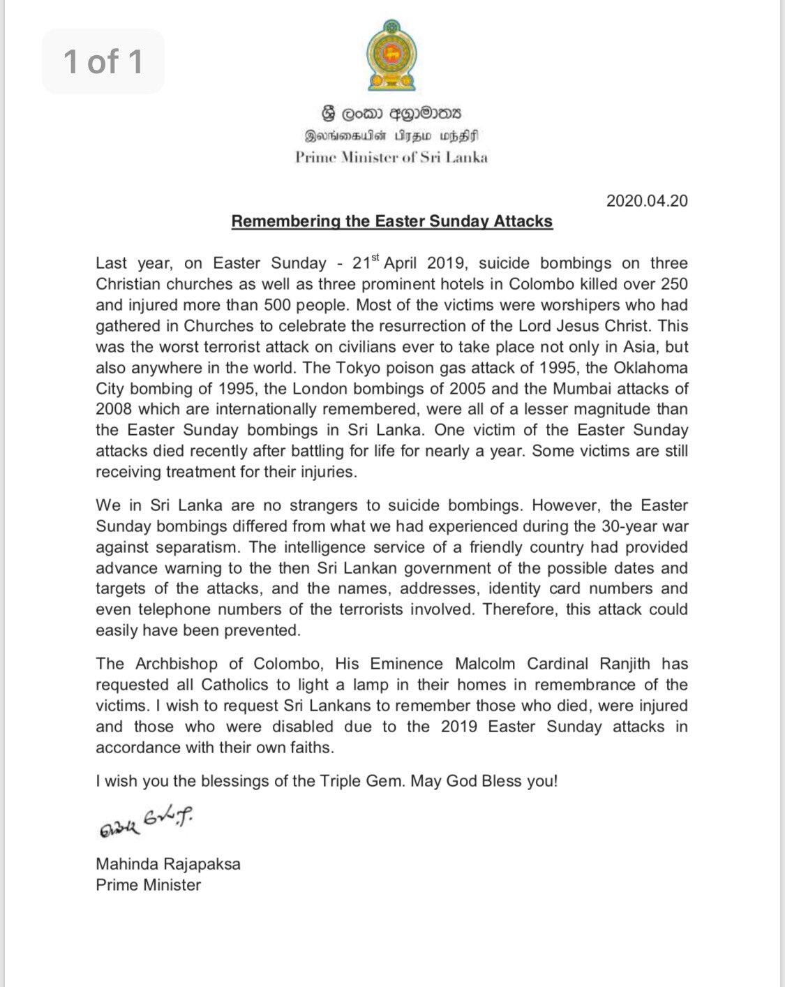 - REMEMBERING THE EASTER SUNDAY ATTACKS – H.E GOTABAYA RAJAPAKSA, PRESIDENT OF SRI LANKA