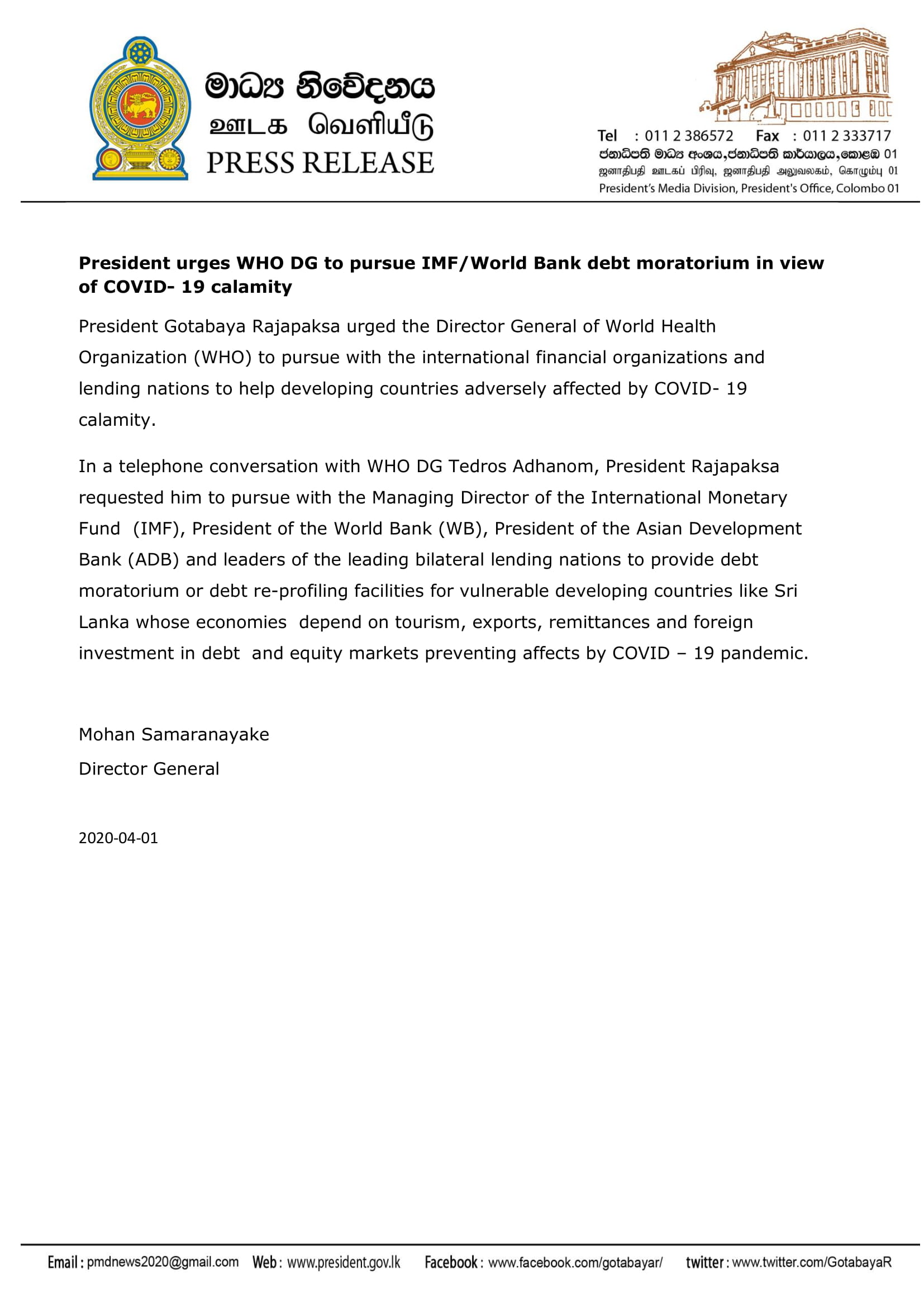 Earlier this week, taking note of the growing concerns of the Overseas Sri Lankans amidst the rapid spread of COVID- 19 and their inability to immediately return to Sri Lanka, the Ministry had discussed with Sri Lanka Missions abroad ongoing and further measures to ensure the well being and safety of Overseas Sri Lankans.
